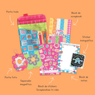 ¿Y todo esto es un pack? ¡Yes! El porta todo, el sticker holográfico, el separador magnético, el porta foto acrílico, el block de notas y el block de scrapbook sólo los podrás encontrar dentro de este pack especial.